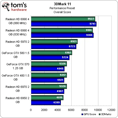 Однако критике подверглись его чудовищный нагрев, шум под нагрузкой и высокое энергопотребление. Через две недели после выпуска HD 6990 Nvidia представила двухчипового конкурента GTX 590, который, хотя и был тише, но все же не смог свергнуть AMD с точки зрения производительности.