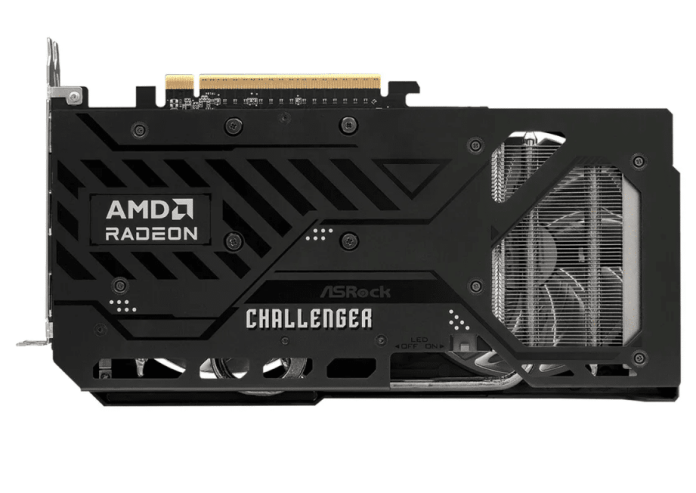 Конструкция ASRock RX 9060 XT 16 ГБ Challenger Standard Edition идентична модели Challenger OC — двухслотовое решение с двумя вентиляторами и алюминиевым радиатором. Карта питается от одного 8-контактного разъема PCIe. Видеовыходы включают два DisplayPort 2.1a и один HDMI 2.1b.