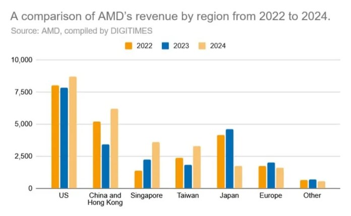 Третье стратегическое решение касалось выбор партнера по производству чипов. Вместо GlobalFoundries, которая в конечном итоге отказалась от своих планов использовать процессы размером менее 7 нм, AMD обратилась к TSMC, хотя у нее был ограниченный опыт работы с высокопроизводительными процессорами x86 в период с 2017 по 2019 год, несмотря на ее лидерство в передовых процессах. Однако использование передовых технологических процессов TSMC сыграло решающую роль, и AMD стала одним из ведущих клиентов компании. Ожидается, что по мере роста спроса на чипы искусственного интеллекта объем производства AMD будет продолжать расти.