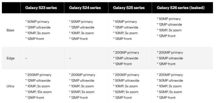 Единственная модель, для которой запланировано улучшение камеры, -это Galaxy S26 Edge: разрешение его ультра -ультрафальтовой линзы увеличится с 12 до 50 мегапикселей.