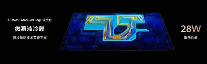 Huawei MatePad Edge с жидкостным охлаждением сочетает в себе сверхточный микронасос и ультратонкий слой охлаждающей жидкости. Последнее обеспечивает быструю циркуляцию тепла и холода внутри корпуса. Технология также снижает температуру самой горячей точки экрана на 2-3°C.
