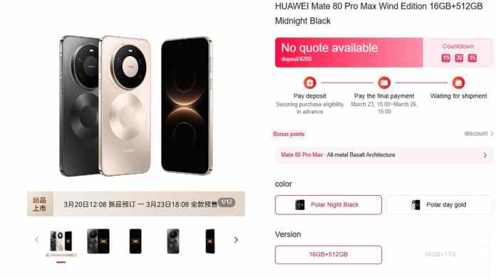 Mate 80 Pro Max Wind Edition доступен в цвете Polar Night Black (черный) и Polar Day Gold (золотой). Цена смартфона не объявлена.