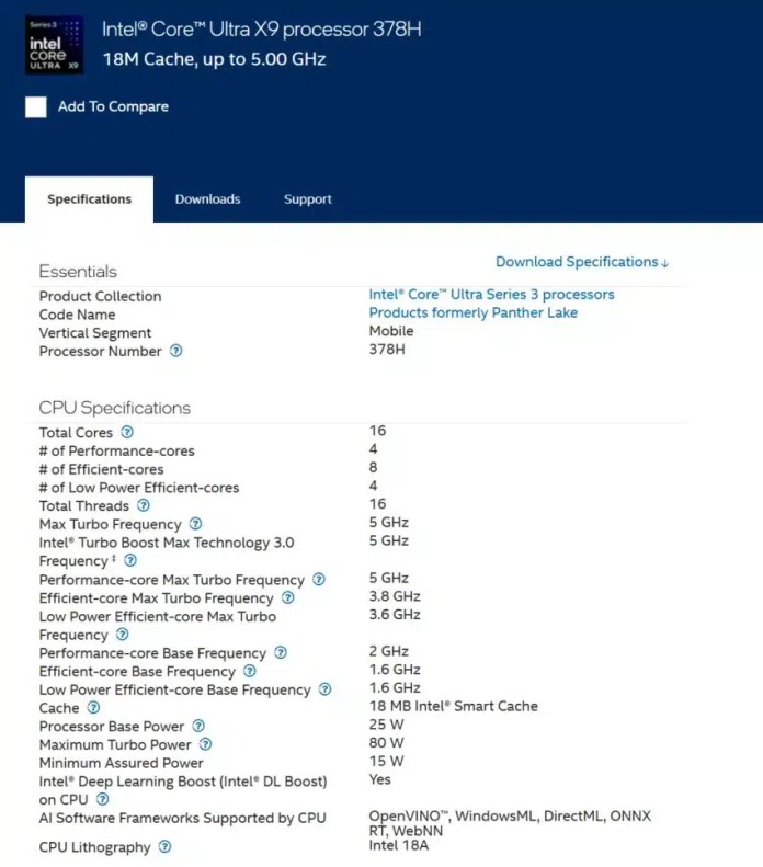 Никакой лишней суеты Интел представила два новых мобильных процессора — 18-ядерный Core Ultra 7 251HX из серии Arrow Lake-HX, предназначенный для игр, и 16-ядерный Core Ultra X9 378H из серии Panther Lake. Оба чипа появились на сайте компании без официального публичного анонса.