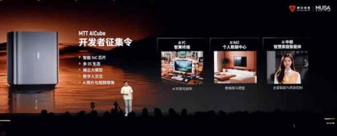 Встроенный DPU поддерживает до двух дисплеев 8K или восьми дисплеев 4K с частотой 50 Гц (DP/MIPI); DSP поддерживает шумоподавление AI и звуковые эффекты Hi-Fi; он также имеет встроенный интернет-провайдер для работы с камерами с разрешением до 32 мегапикселей с HDR. SoC Yangtze предлагает высокую производительность при низком энергопотреблении, отмечает Moore Threads. Компания продемонстрировала ноутбук MTT AIBook и мини-ПК MTT AICube как рендеры компьютеров на базе этого чипа.