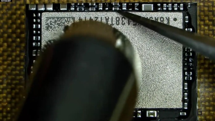 Отсоединив несколько разъемов, он снял плату. Сняв защитную ленту, он обнаружил плотное расположение компонентов, включая SSD. Начав нагревать чип NAND, он медленно удалил с него клей BGA, пока чип не был окончательно удален. После очистки контактных площадей он просто установил новый модуль емкостью 1 ТБ и повторно нагрел эту область, чтобы зафиксировать его на месте.