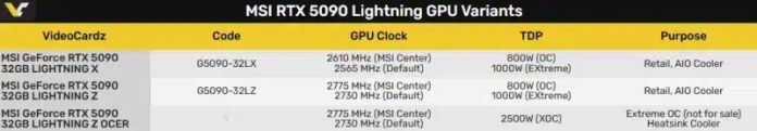 MSI выпустит три версии сверхмощной GeForce RTX 5090 Lightning: X, Z и OCER