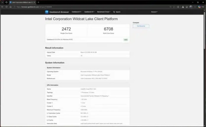 На Geekbench появились новые результаты для бюджетного процессора Intel Wildcat Lake