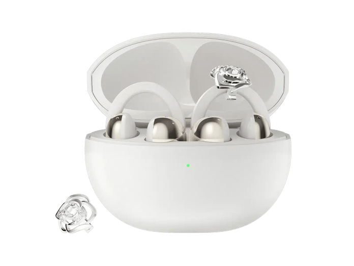 На MWC 2026 в Барселоне TCL представила на выставке одни из самых необычных беспроводных наушников – КристаллКлипкоторые представлены как в стандартной версии, так и в специальной версии, инкрустированной кристаллами. Сваровски. В новой модели используется конструкция открытого уха, которая не входит в слуховой проход, а крепится к уху с помощью гибкой титановой дуги.