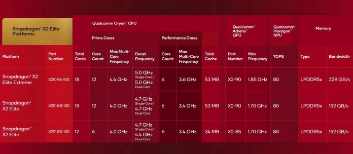 Серия Snapdragon X2 Elite включает несколько моделей процессоров. Флагманская модель — 18-ядерный Snapdragon X2 Elite Extreme с частотой до 5,0 ГГц. В серию также входят модели Snapdragon X2 Elite с 18 и 12 ядрами, работающими на частоте до 4,7 ГГц. В рамках нового поколения ноутбуков Zenbook с чипами Snapdragon компания Asus предложит Zenbook A16 с X2 Elite Extreme, а также Zenbook A14 с 18-ядерным процессором Snapdragon X2 Elite.