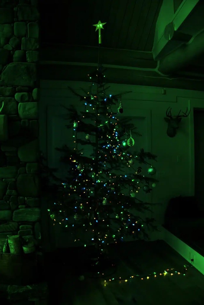 В прошлом году технические издания опубликовали отличный пример того, как выглядит фотография без обработки, это перевод из блога фотографа-любителя и разработчика Maurycy Z — оригинал ниже. Автор показывает изображение елки в исходном формате RAW, захваченное сигналом датчика:
