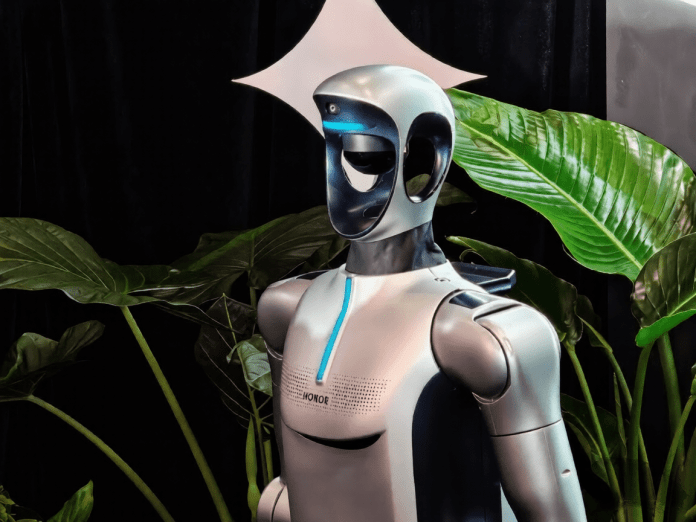 Хонор продемонстрировала на сцене телефон-робот рядом с миниатюрным роботом-гуманоидом. Компания не предоставила никаких подробностей об устройстве, хотя ранее заявляла о планах по запуску роботов в коммерческую эксплуатацию.