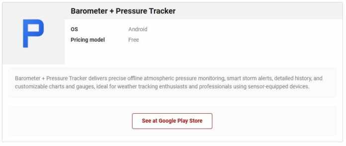 В Play Store есть множество приложений-барометров, но большинство из них перегружены рекламой, что делает их неудобными в использовании. Я использую Барометр+ Датчик давленияотносительно новое приложение, которое поддерживает чистоту бесплатной версии без раздражающих перебоев. Он считывает данные непосредственно с датчика вашего телефона, поэтому работает полностью оффлайн.